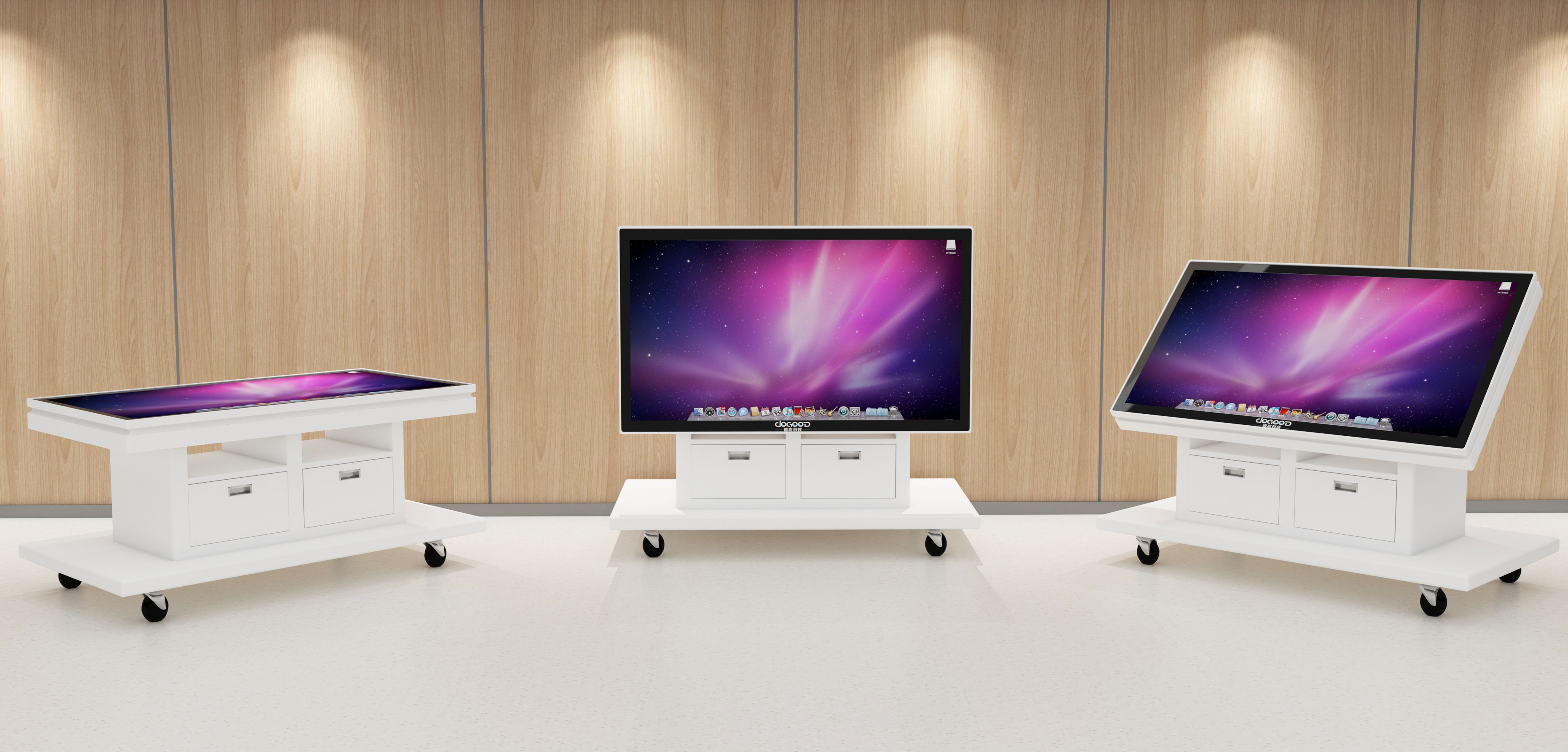 智慧AR茶几具有翻转功能,,,支持平面和竖屏使用,,台面可以在0-90度之间翻转并任意位置悬停,,,带电容触控4K显示屏,,,,内置高配PC可支持Marker令牌以满足多种实训需求,,,,茶几台面无需工具辅助即可快拆方便壁挂使用。。。。